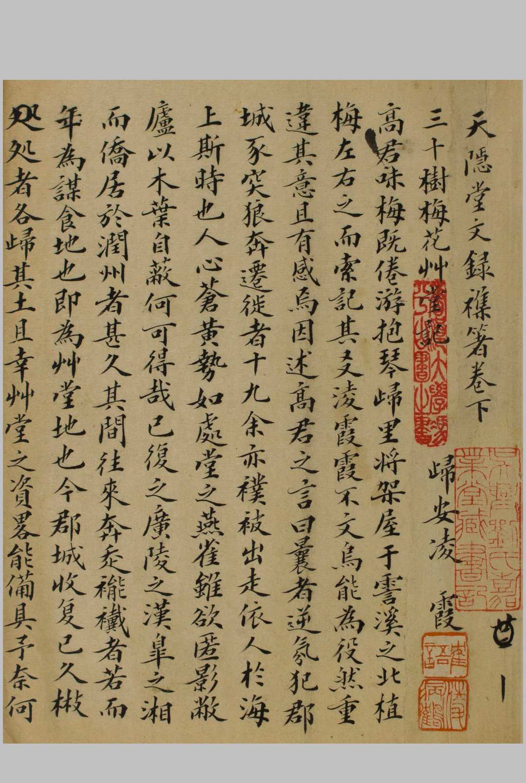 凌霞 [清]一名瑕,字子兴,号病鹤,晚号疣琴居士,或称乐石野叟,别署二金梅室,归安(今浙江湖州)人(海上墨林、广印人传作:字子与,乌程人。清画家诗史作字麈遗,瓯钵罗室书画过目考作:字子与,号麈遗吴兴人,明忠介公裔孙)。工诗,舆杨见山(岘)陆存斋、施均甫诸人称苕上七子。善写梅,水墨数笔,若不费意,而冷韵高情,足与金俊明相颉顽。书法董其昌,绝无俗韵。通小学,多藏精本。有《天隐堂稿》、《三高遗墨楼集》、《寒松阁谈艺琐录、瓯钵、罗室书画过目考》。