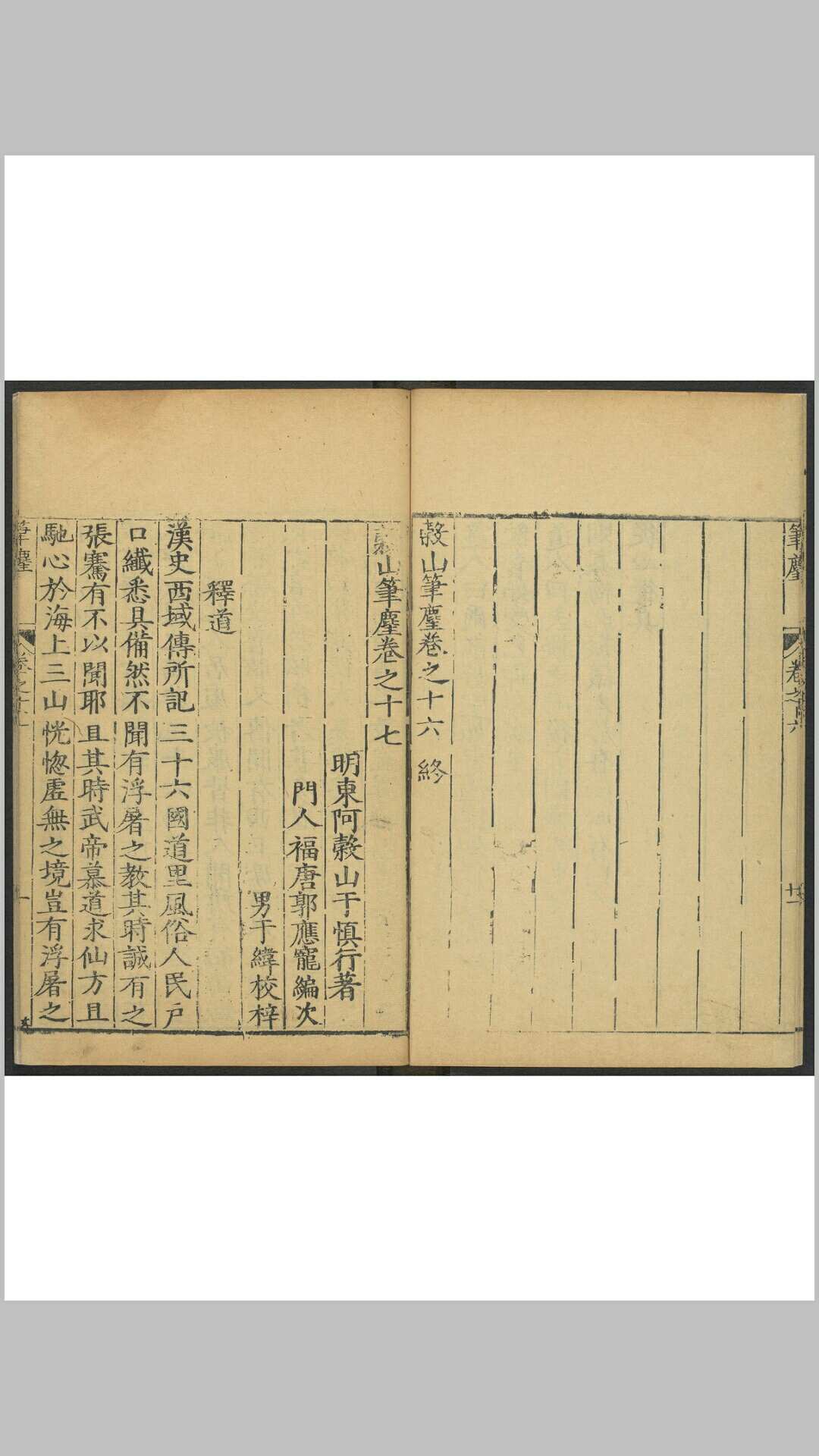 《谷山笔麈》是“元明史料笔记丛刊”之一。作者于慎行进士出身,官至礼部尚书,对明万历以前诸大事,如典章、人物、兵刑、财赋、礼乐、边塞等不仅记其始未,且考其得失善恶,求其兴衰成败真谛。其中,有对直臣义节的颂扬,有对廉洁官吏的称赞,而对一些招权纳贿、肆意凌虐之徒,大加抨击。同时对耳闻目睹之事如风俗、轶事、释道均予笔录和评述。