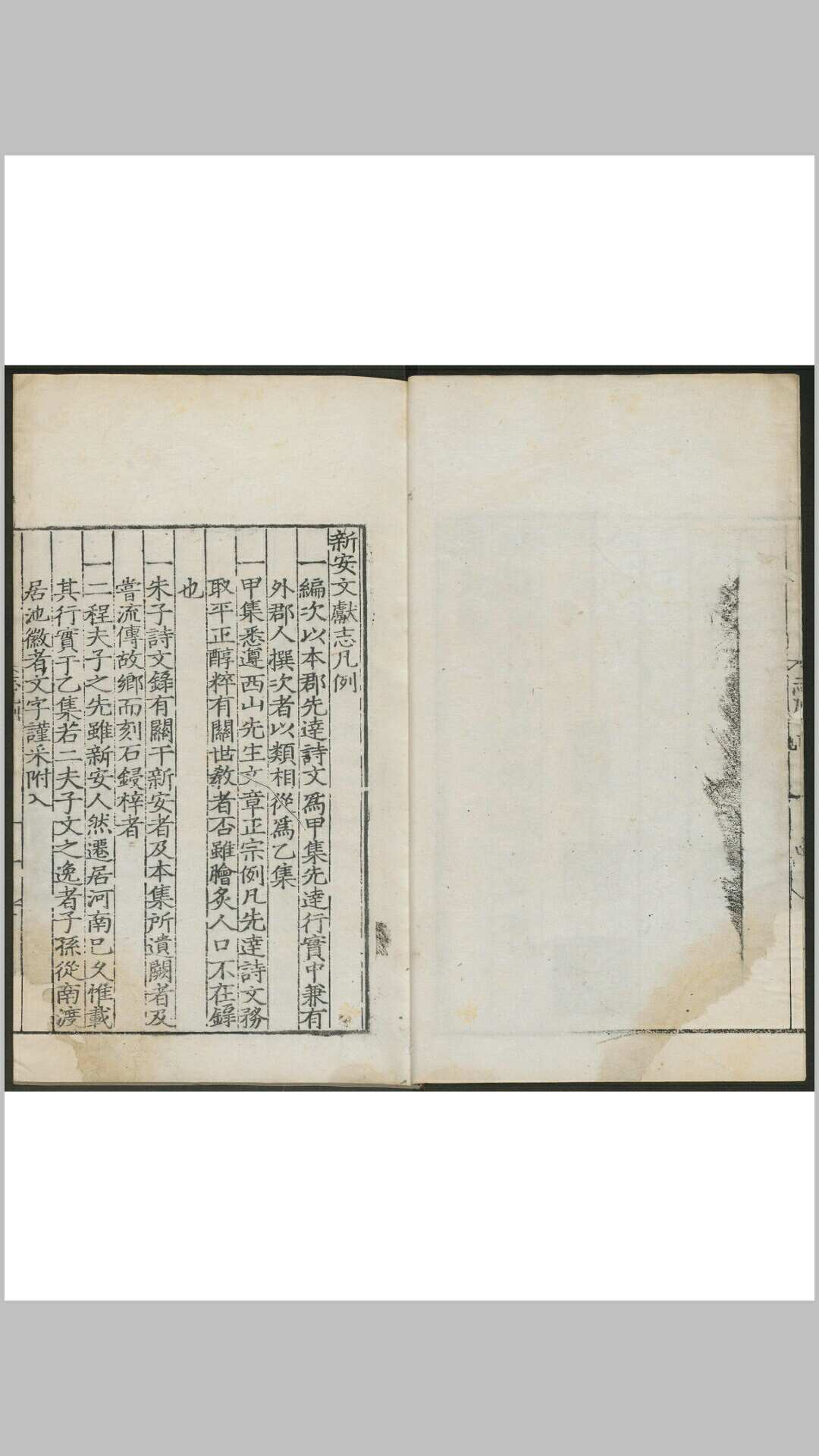 《新安文献志》(全三册)共一百卷,分甲乙集;甲集六十卷,专收徽州本郡自汉迄明乡贤所撰之诗文;乙集四十卷,则兼收外郡人徽州先贤行实之文。全书共收文一0八七篇,诗一0三四首。百卷之前,先列有《新安先贤事畧》上下卷,上卷收列徽州籍各朝名人三二六人;下卷收列外地曾在徽州为官或寄居的名士一一四人。