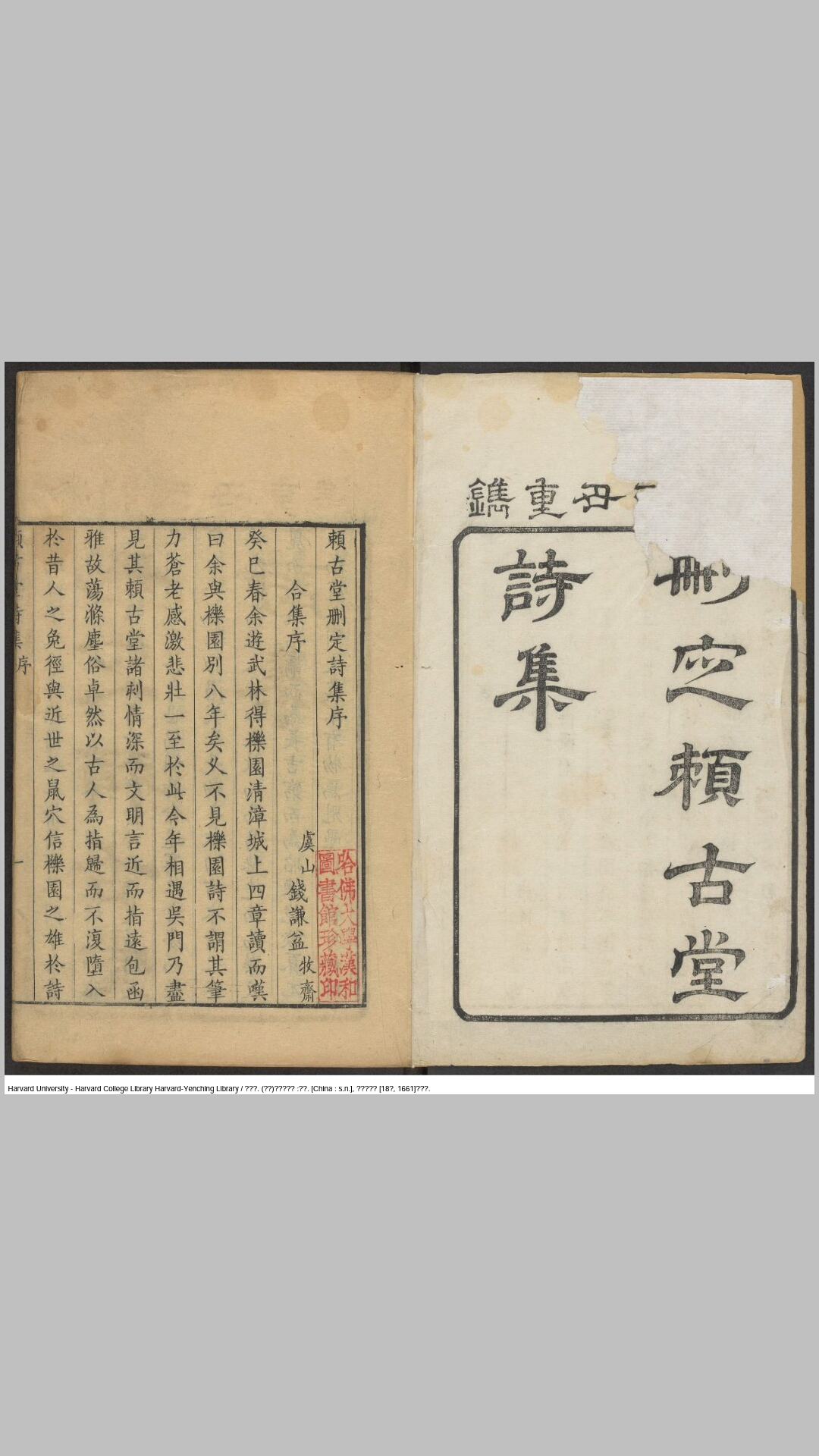 删定赖古堂诗集4卷.清.周亮工撰.吴宗信阅.清顺治18年重刊本