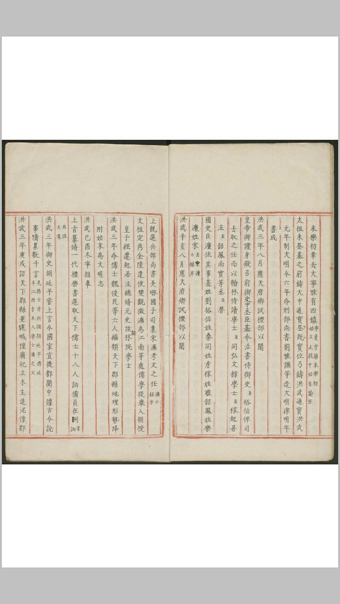 皇明本纪. 皇朝平吴录. 北平录. 平蜀记. 洪武圣政记. 钦定滁阳王庙碑岁祀册暨敕赐滁阳王庙碑. 壬午功臣爵赏录. 北征前后录. 北征记. 建文遗蹟. 革除遗事. 宣宗预製官箴. 宣宗预製诗. 正统临戎录. 李侍郎北征录. 否泰录. 野记. 辰章集录. 勑议或问. 太狩龙飞录. 立斋閒录. 天顺日录. 燕对录. 损斋备忘录. 畜德录. 謇斋琐缀录. 清溪暇笔. 寓圃杂记. 病逸漫记. 蓬轩类记. 彭文宪公笔记. 菽园杂记. 后监录. 平定交南录. 议处安南事宜. 平蛮录. 东征纪行录. 使事纪略. 日本国考略。