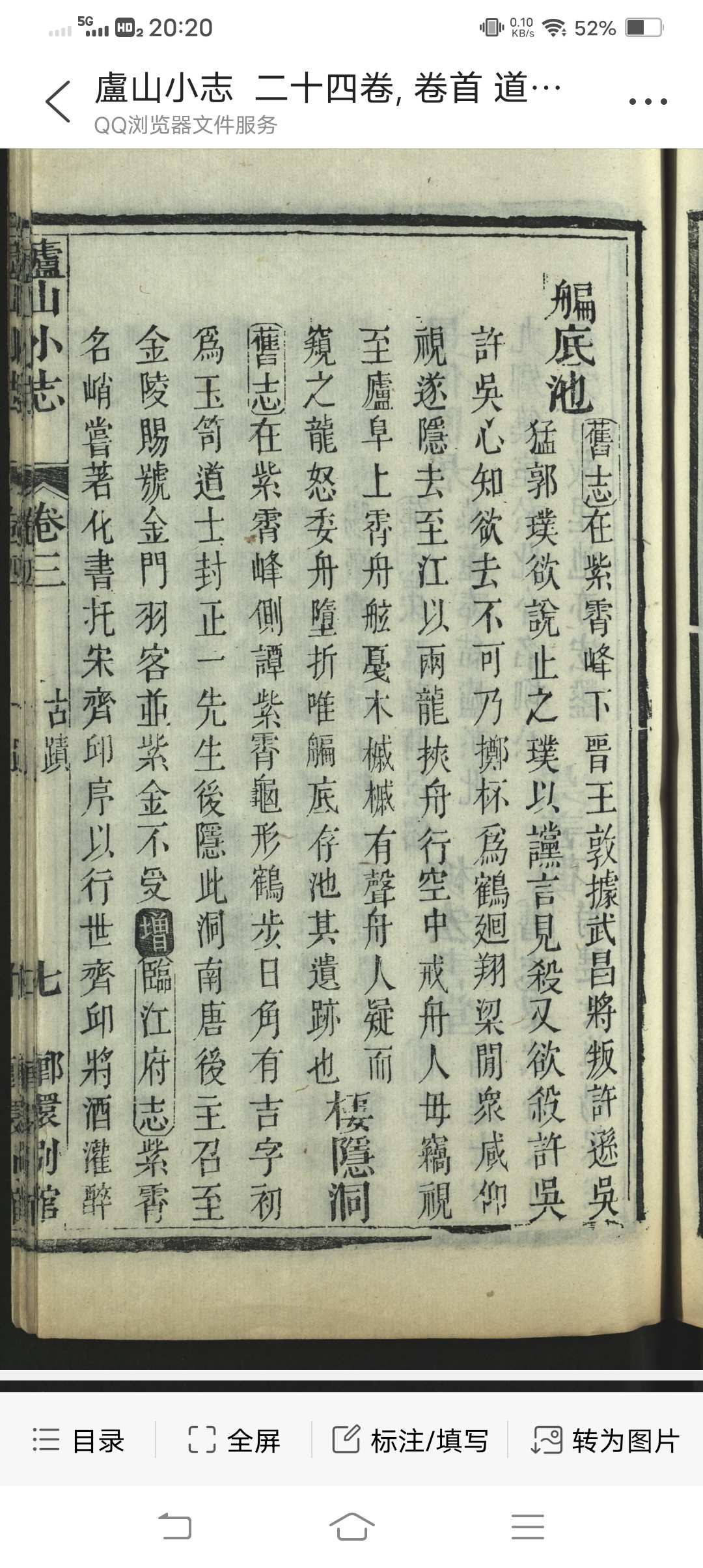卢山小志 二十四卷, 卷首 道光四年新镌 嫏嬛别馆藏板