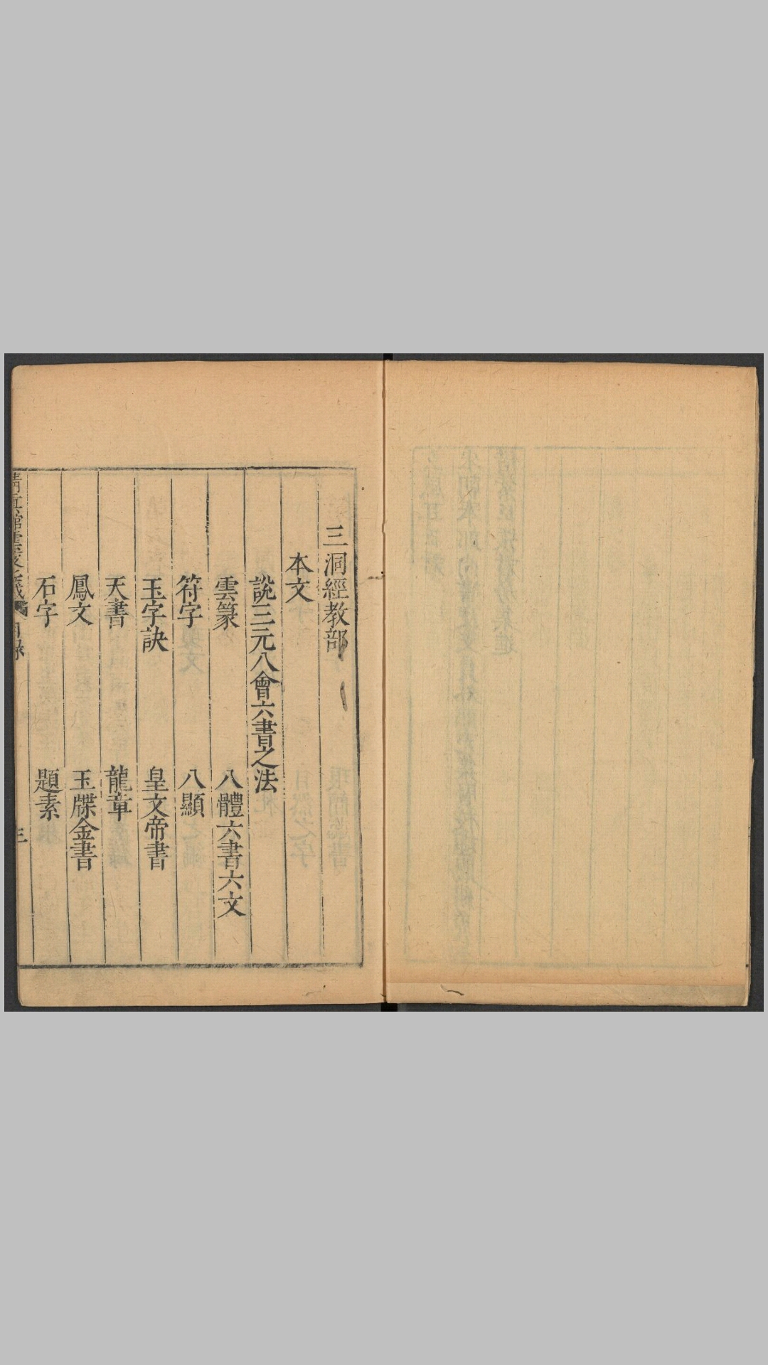 《云笈七签》是择要辑录《大宋天宫宝藏》内容的一部大型道教类书。北宋天禧三年(公元1019年),当时任著作佐郎的张君房编成《大宋天宫宝藏》后,又择其他认为的精要万余条,于天圣三年至七年(1025~1029)间辑成本书进献仁宗皇帝。