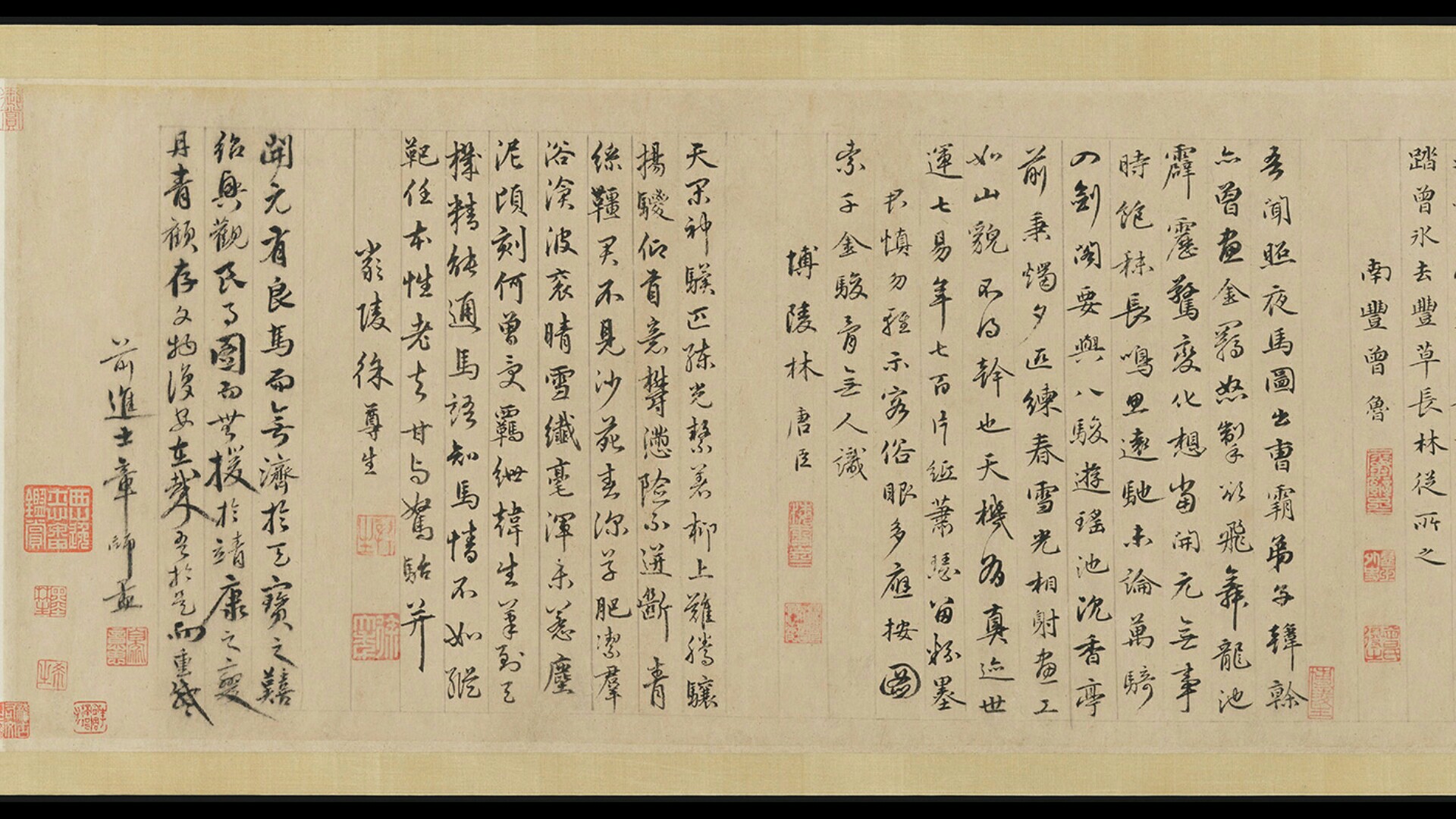 《照夜白》是韩干最著名的代表作。这匹名叫“照夜白”的马,是唐玄宗的坐骑,曾跟随唐玄宗南征北战,立下无数战功,是皇帝的宠爱之马。韩干画这匹马时,全力表现这匹马的轩昂气势。“照夜白”被拴在马桩上,昂首嘶鸣,毛鬃竖立。丰满而结实的身体,劲细而灵动的四肢,跃跃欲试,大有挣脱缰绳,重返沙场,驰骋千里之势。画家只用了非常简练、沉着、果断的线条勾画出马的生动形象,用飘动飞扬的马鬃来强化“照夜白”的千里之志。在眼睛四周、嘴唇、鼻孔和耳根等地方,用墨色烘染,增加了“黑夜白”神采奕奕的气势。这幅画充分体现了韩干不凡的艺术表现力。