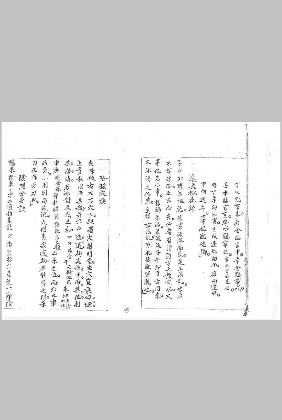 《地理收山出煞》厚118个筒子页,内容有:九宫水,明肩护带蝉翼肌理图,迎送关锁过峡图,论情势真伪,正体五行论入首龙运,正五行论来龙之生旺克浅,双山五行论,元空五行,八卦五行论局砂水之配合,洪苑五行,斗首五行择日看元辰,纳音五行论分金布气,二十四山反复黄泉,白虎黄泉依山斩,八曜忌去水,八煞诀,反复黄泉总断,二十四山劫歌论坐山,纳甲五行,正五行,玄空大五行,至空五行,四大水囗龙诀,八煞向忌水断,滚浪桃花断,降煞穴诀,阴阳分受诀,窝钳吞吐八体形,乳穴窝钳面,龙楼图,论阴阳形体穴法,石山论开向,论真气降势,独山论力怪重,高山形势真假论,向法诀,净阴净阳,八封配合,纳甲论九星,三合既双山五行,贵人。天皇,八曜煞,悮扦九向,催官论龙立向(这一节能查到),天星各山異名,紫梦经书云,黄泉经云,天星名,立向杂论十二支龙,三诀九例,水法诀缝针水法,水法一生旺之说,向方一缝针之说,中形局论,四正向兼甲庚丙壬分金,四库向……分金,四维向……,论去口诀,论放水,后天……旺方立向,先天绝……生立向,哀方水法,水城立向,小元空水路,小元空用法,缝针水路,小元五行路,十四进神十退神,十四进神诀并解,十退神诀并解,水格说,四贪狼例,三奇格例,三奇格例倒右图,三合连珠例及图,直流格例及图,襑马上御街法,干维水法,赖公乘气诀,赖公抚龙法,借局法,杨公去伪存真法,发沙诀,中针贪星五行,……控制法例,论名家五行用法,正五行起长生诀,将乾向作例,四阳干向诀,四阴干向,先天长生向,四阴干向,论分金度数,学字执笔图,星宿度数图,京城水灾书信。