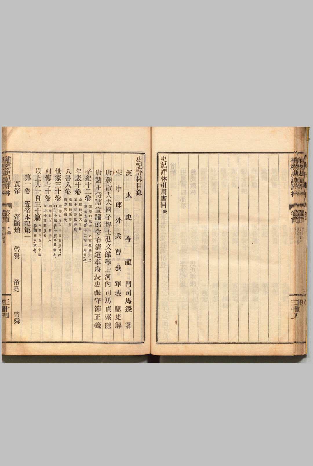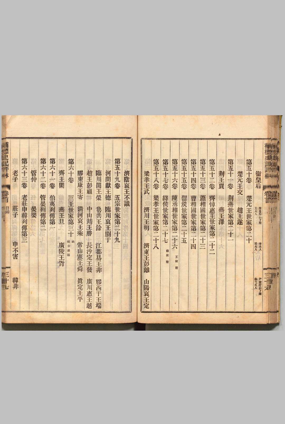 《补标史记评林》是日本学者有井范平在明代凌稚隆《史记评林》与李光缙《增补史记评林》的基础上再一次对书中评语进行补标所成之书。该书《史记》正文及三家注部分以宋本与金台汪谅本对校,校勘精审。评林部分不仅辑录了汉代以来诸多名家的评语,而且收录了凌稚隆、李光缙、有井范平的按语,可谓《史记》辑评的集大成之作。